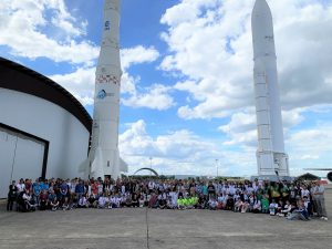 Brasão da UFSC: A parte central do brasão é composta por uma flâmula. Ela é azul na porção superior e amarela na inferior. Sobre o azul, à esquerda, cinco estrelas brancas formam o cruzeiro do sul; à direita, uma faixa branca tem o texto escrito em vermelho: ars et scientia. Centralizada na parte amarela, há uma roda dentada vermelha quebrada na seção inferior. Duas folhas verdes de palma estão encaixadas no eixo da roda. Uma folha pende para o lado direito e a outra para o lado esquerdo. Atrás da flâmula há uma tocha amarela, da qual enxergamos os extremos: acima, com o fogo desenhado em vermelho, e abaixo, a parte inferior do bastão. Do lado esquerdo da flâmula, há um ramo verde de carvalho e do lado direito um ramo verde de louro. A parte inferior do brasão é composta por uma faixa estreita vermelha, escrito em branco: Universidade Federal de Santa Catarina. Abaixo da faixa, escrito em fonte maiúscula azul: UFSC.